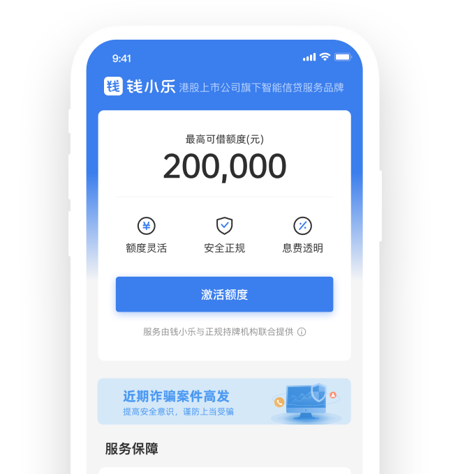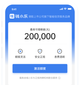 钱小乐是港股上市公司旗下智能信贷服务品牌,以“乐观向前,遇见美好生活”为服务理念,通过与持牌金融机构合作,同时广泛布局和嵌入多元生态场景,为个人用户和小微企业提供安全、智能、触手可及的信贷服务。具有申请简单、额度高、放款快、息费透明等特点。